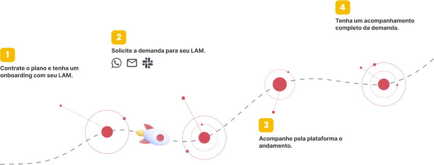 Solicite suas demandas por e-mail, Slack ou WhatsApp!!